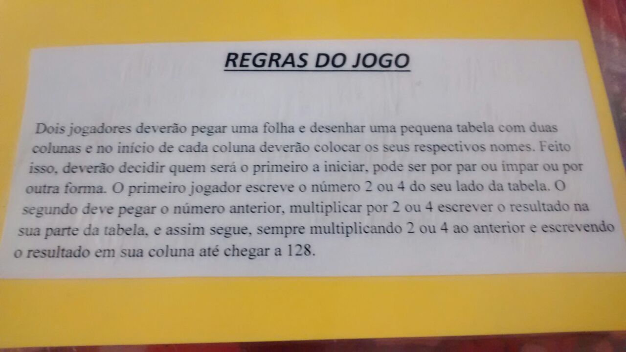 serão utilizadas as mesmas regras do jogo anterior. Porém, abaixo dos